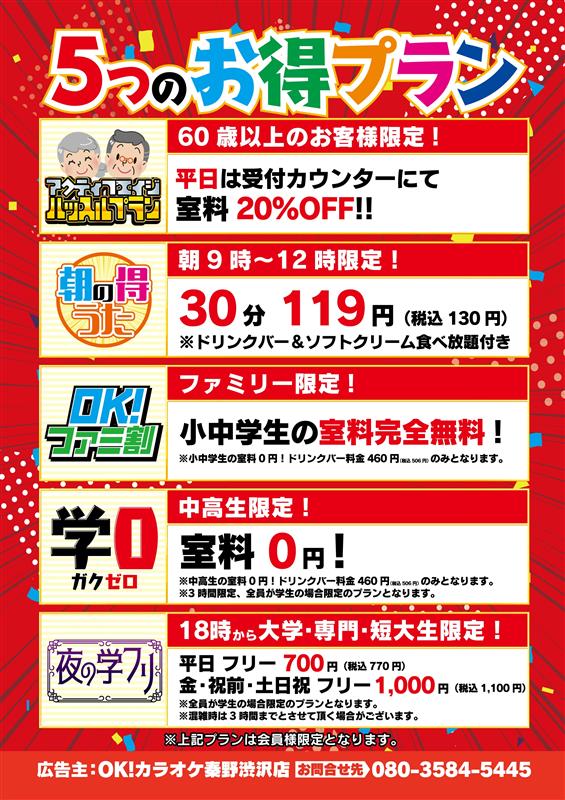 | 店舗名 | OK!カラオケ 秦野渋沢店 |